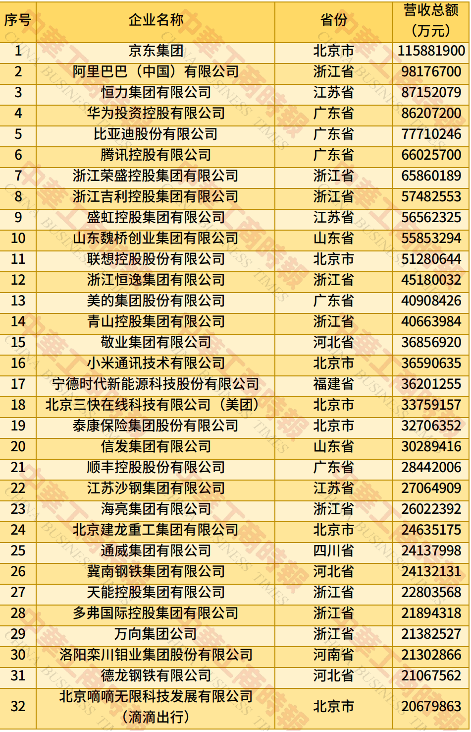 导读:全国工商联28日发布“2025中国民营企业500强”榜单。京东集团、阿里巴巴(中国)有限公司、恒力集团有限公司位居前三。