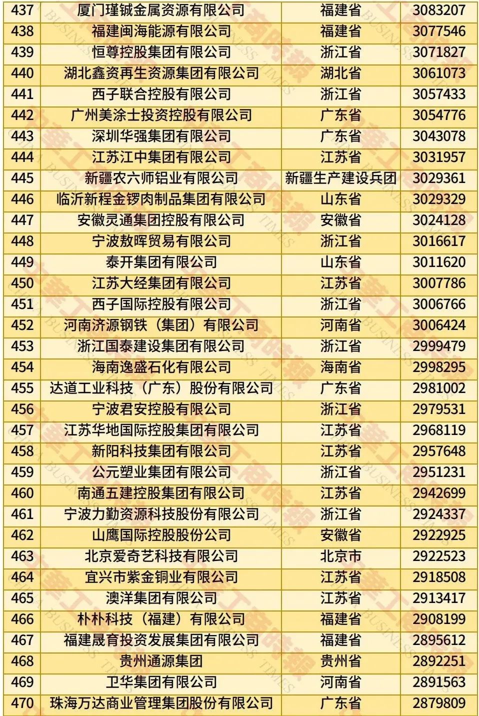 此次民营企业500强入围门槛增至270.23亿元;营业收入总额达到43.05万亿元;净利润合计1.80万亿元;研发费用总额1.13万亿元,研发人员总数115.17万人,平均研发经费投入强度2.77%;纳税总额达1.27万亿元,纳税额超过10亿元的企业有240家,占500强比例为48.00%。
