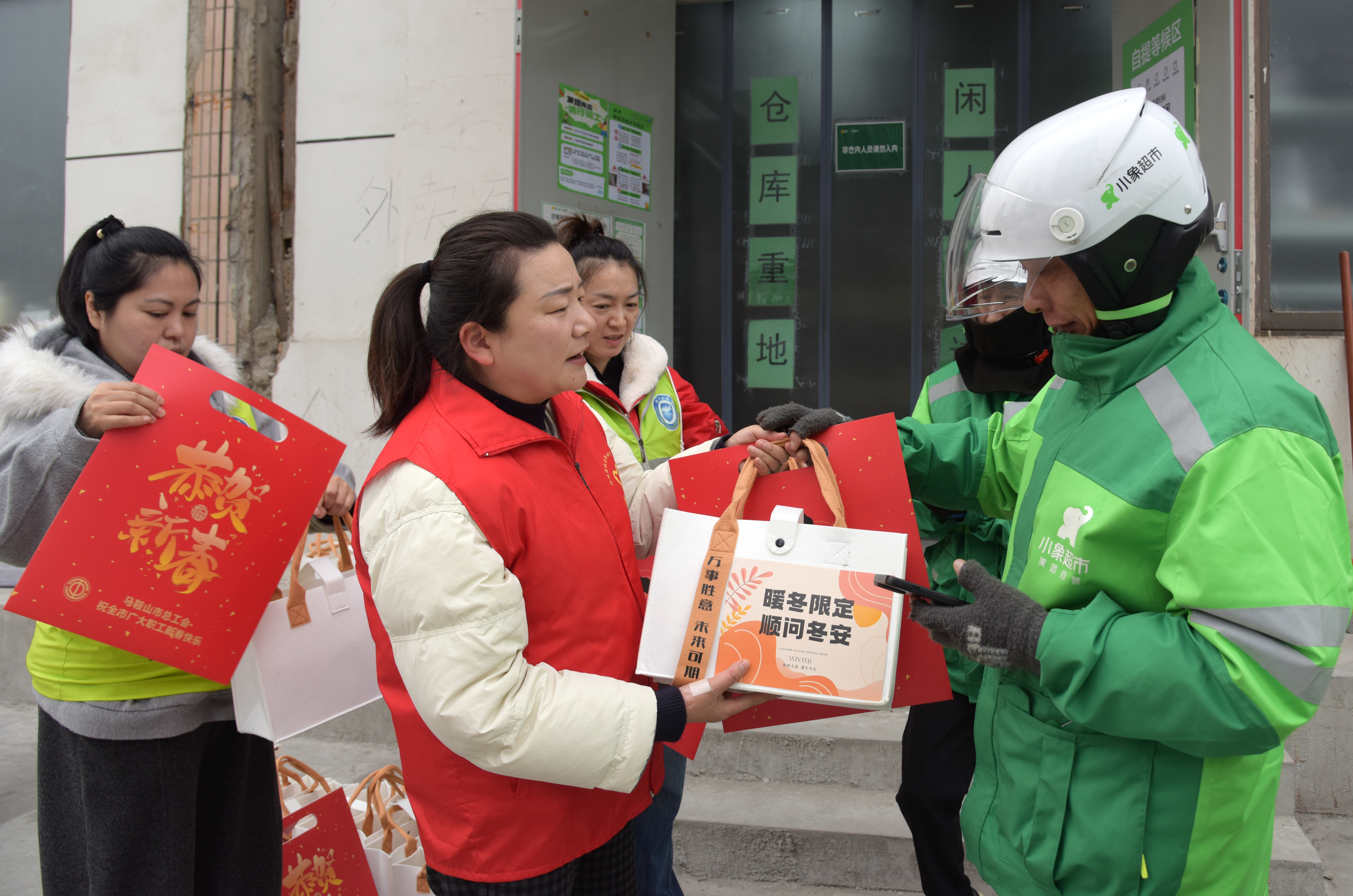 2026年2月5日上午,安徽省马鞍山市花山区桃源路街道珍珠园社区党委携手社区联合工会,组织工作人员走进辖区小象超市,为坚守岗位的外卖员们送上冬日里的暖心慰问。社区工作人员给外卖员们递上了装有保暖物资的“暖冬礼包”,同他们亲切交流,询问日常配送工作中的困难与需求,用实际行动传递社区关怀,让奔波在寒风中的城市服务者感受到“家”的温暖。