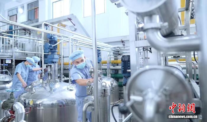 图为海南华研胶原科技股份有限公司内,工人正在进行生产。 (海南华研胶原科技股份有限公司 供图)