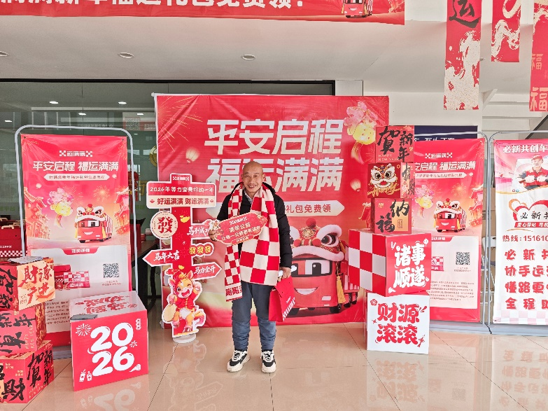 本次“平安启程 福运满满”活动自2026年2月25日正式启动,将持续至3月15日,覆盖全国12座物流枢纽城市——昆明、沈阳、郑州、长沙、南昌、哈尔滨、合肥等均设有线下活动网点,方便货车司机就近参与。活动参与方式简单便捷:司机师傅只需前往指定线下网点,拍摄新年祝福视频并带上 #运满满新年送福 话题发布至社交平台,即可免费领取限量版“福运满满” 开工礼包。礼包内不仅包含围巾、保温杯等暖心好物,更有平台专属定制的安全篷布。