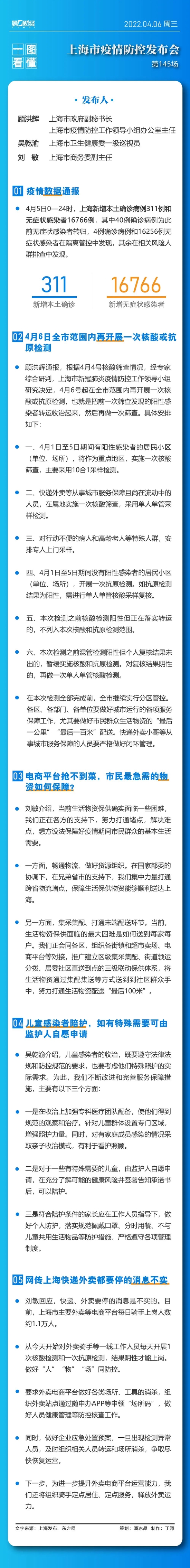 上海市政府副秘书长、市疫情防控工作领导小组办公室主任顾洪辉在发布会介绍,根据4月4号核酸筛查情况,经专家综合研判,上海市新冠肺炎疫情防控工作领导小组研究决定,4月6号起在全市范围内再开展一次核酸或抗原检测,也就是把前一次筛查发现的阳性感染者转运收治起来,然后再做一次筛查。
