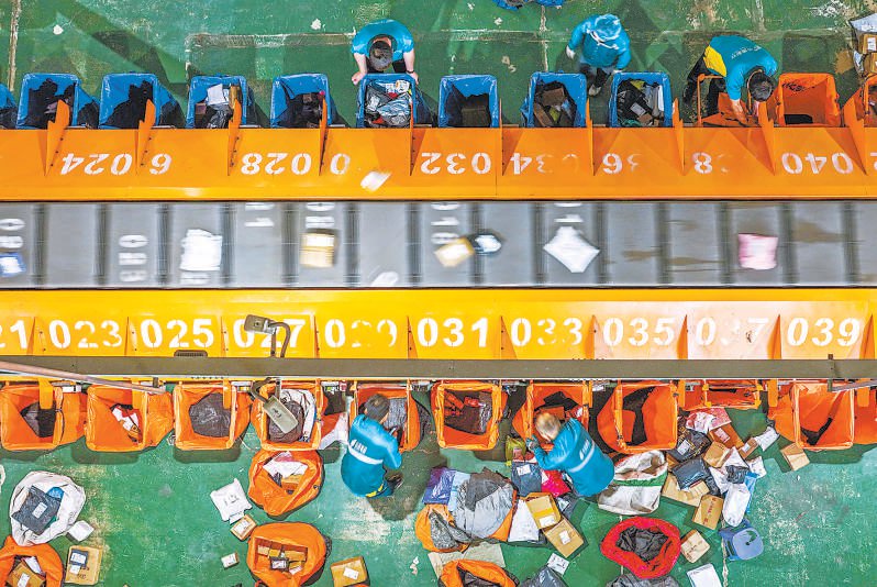 国庆中秋假期,全国邮政快递业共处理快递包裹72.31亿件,日均处理量超9亿件。 新华社发