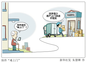 “我们这边只有少数快递公司会送件上门,其他快递公司都把快件放驿站。”湖南邵阳的姜先生说,“驿站离小区还有一段距离,我跟老伴都七十多岁了,家里又没有年轻人,拿快件经常累得气喘吁吁。”