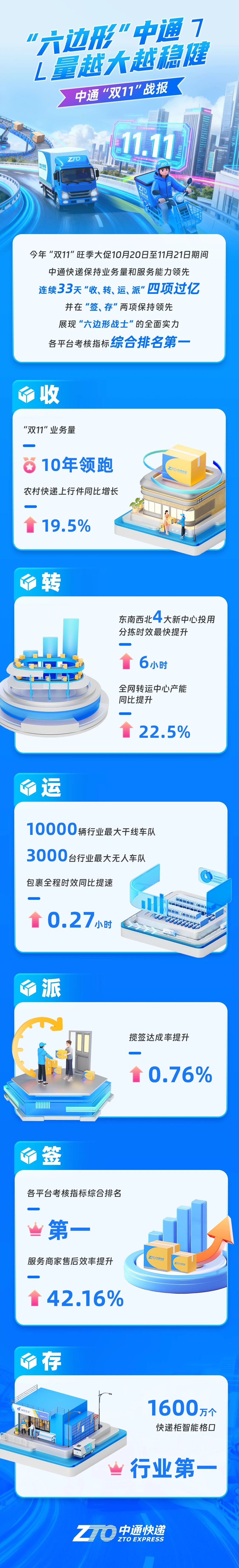 中通发布“双11”战报:“六边形”中通,服务更多商家稳赢旺季
