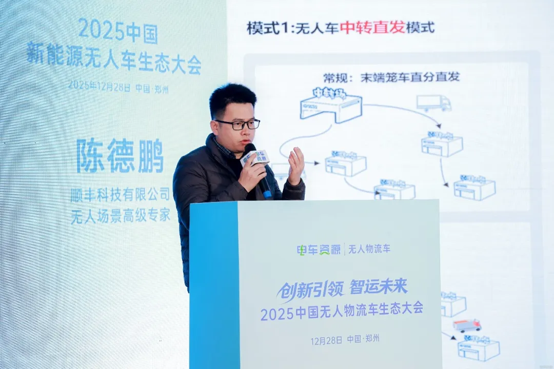 顺丰科技无人场景高级专家陈德鹏认为无人物流是业务必然选项。顺丰构建“空天地一体化”体系,将无人车融入核心场景,实现商业与社会价值统一。