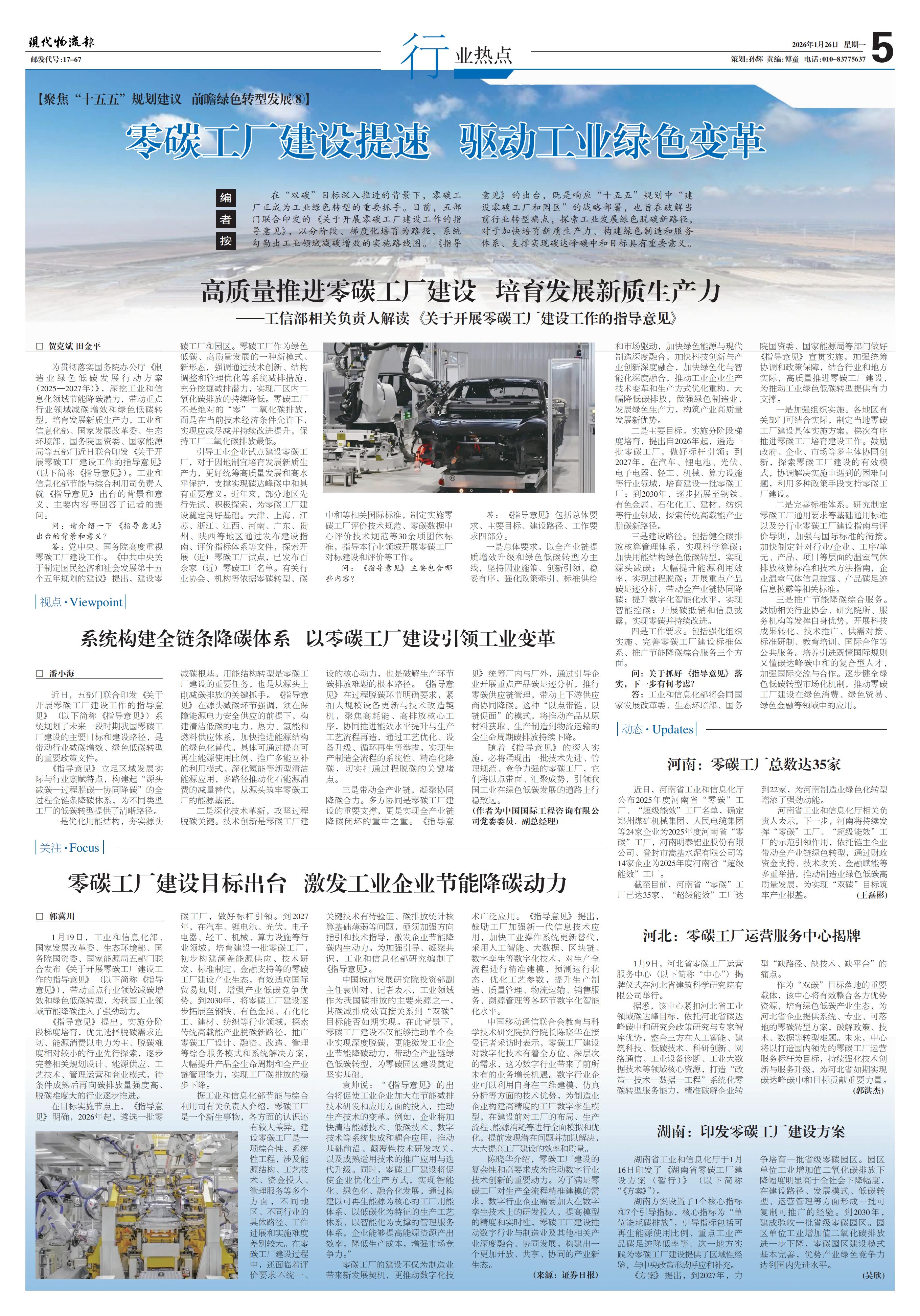 为贯彻落实国务院办公厅《制造业绿色低碳发展行动方案(2025—2027年)》,深挖工业和信息化领域节能降碳潜力,带动重点行业领域减碳增效和绿色低碳转型,培育发展新质生产力,工业和信息化部、国家发展改革委、生态环境部、国务院国资委、国家能源局等五部门近日联合印发《关于开展零碳工厂建设工作的指导意见》(以下简称《指导意见》)。工业和信息化部节能与综合利用司负责人就《指导意见》出台的背景和意义、主要内容等回答了记者的提问。