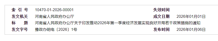 河南省人民政府办公厅关于印发推动2026年第一季度经济发展实现良好开局若干政策措施的通知