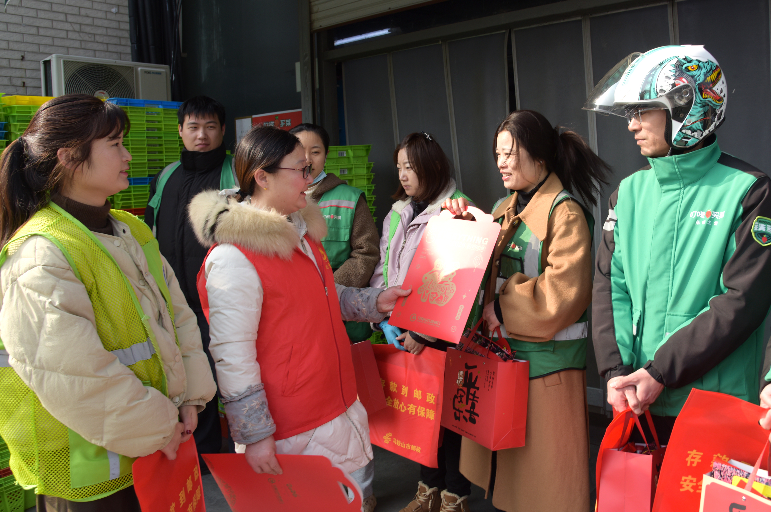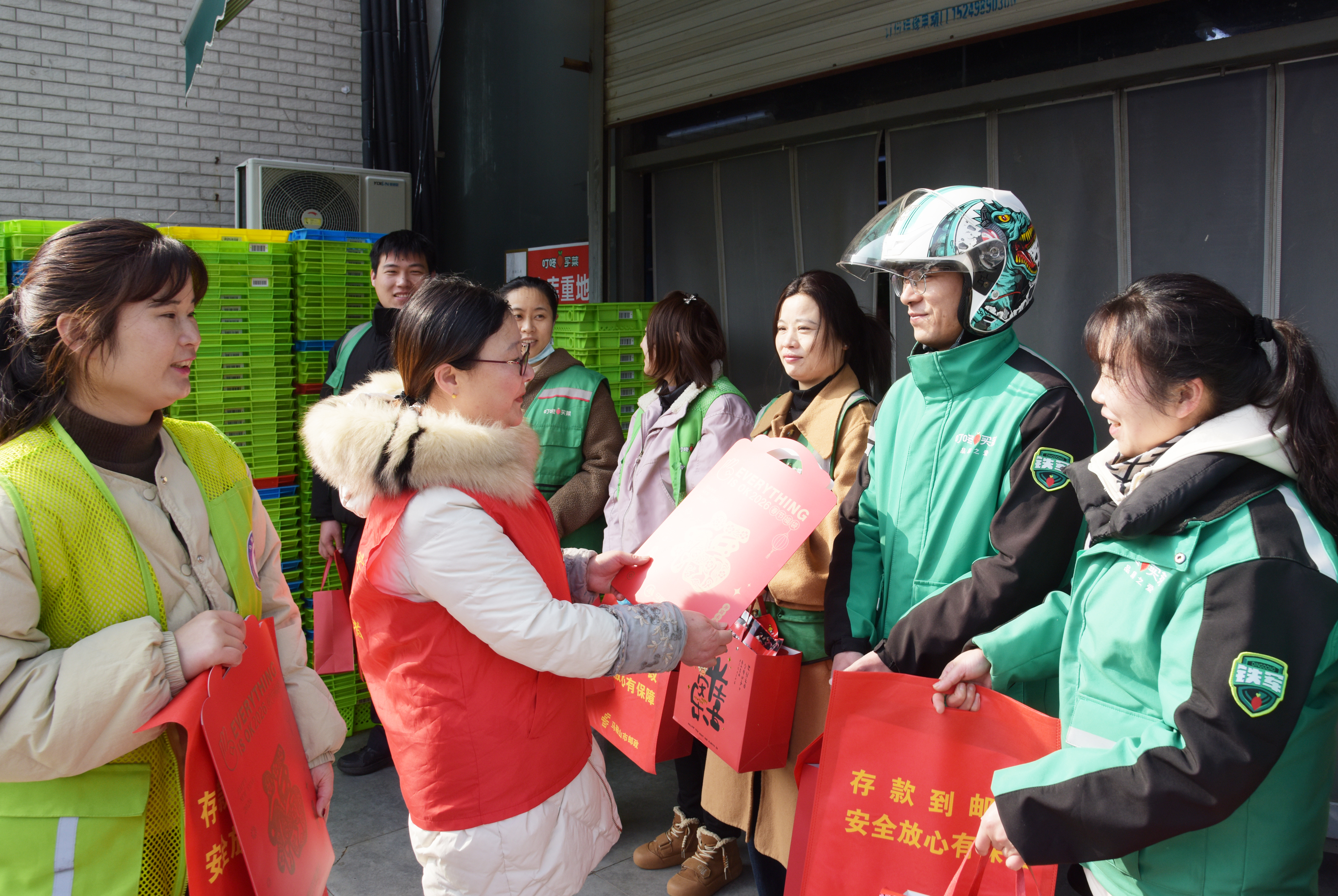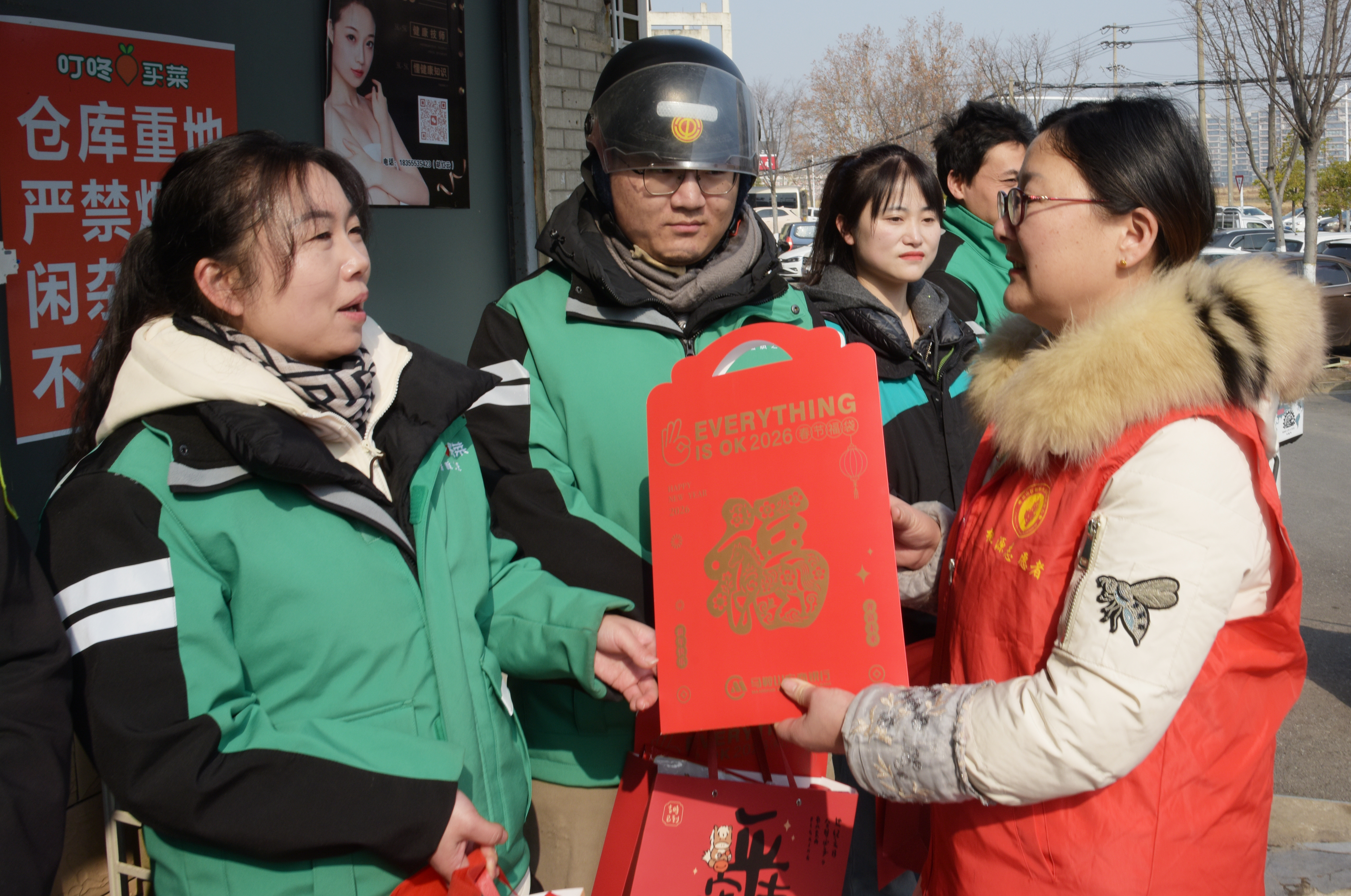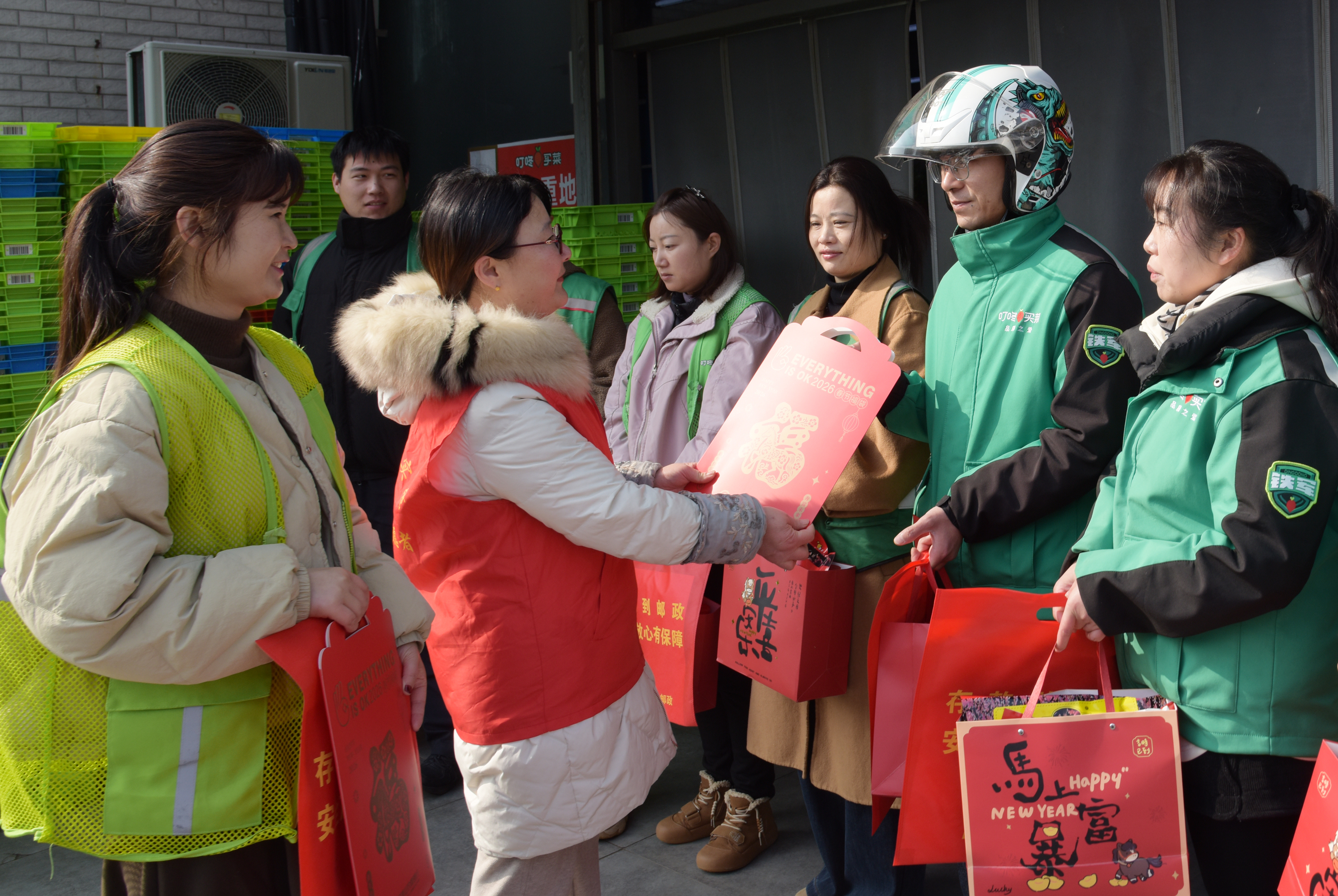 2月11日上午,安徽省马鞍山市花山区桃源路街道江东社区党委携手社区联合工会,开展新春慰问新业态劳动者活动,社区工作者将精心准备的18份新春礼包分别送到辖区“叮咚买菜”配送员和顺丰快递员们的手中,给他们送上“工会新春暖心礼包”和春节祝福,让奔波在寒冬中的劳动者们提前接收到来自工会“娘家人”的新春慰问和祝福。