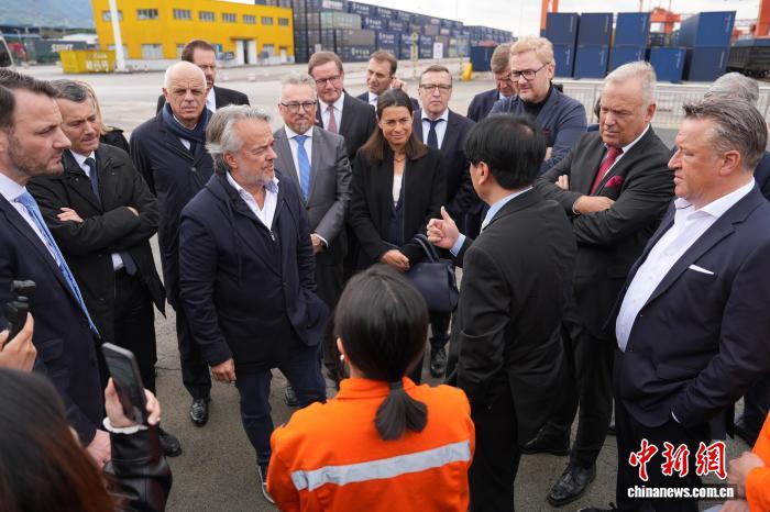 3月18日,德国企业CEO考察团在位于重庆沙坪坝区的重庆铁路集装箱中心站参观、考察。中新社记者 何蓬磊 摄