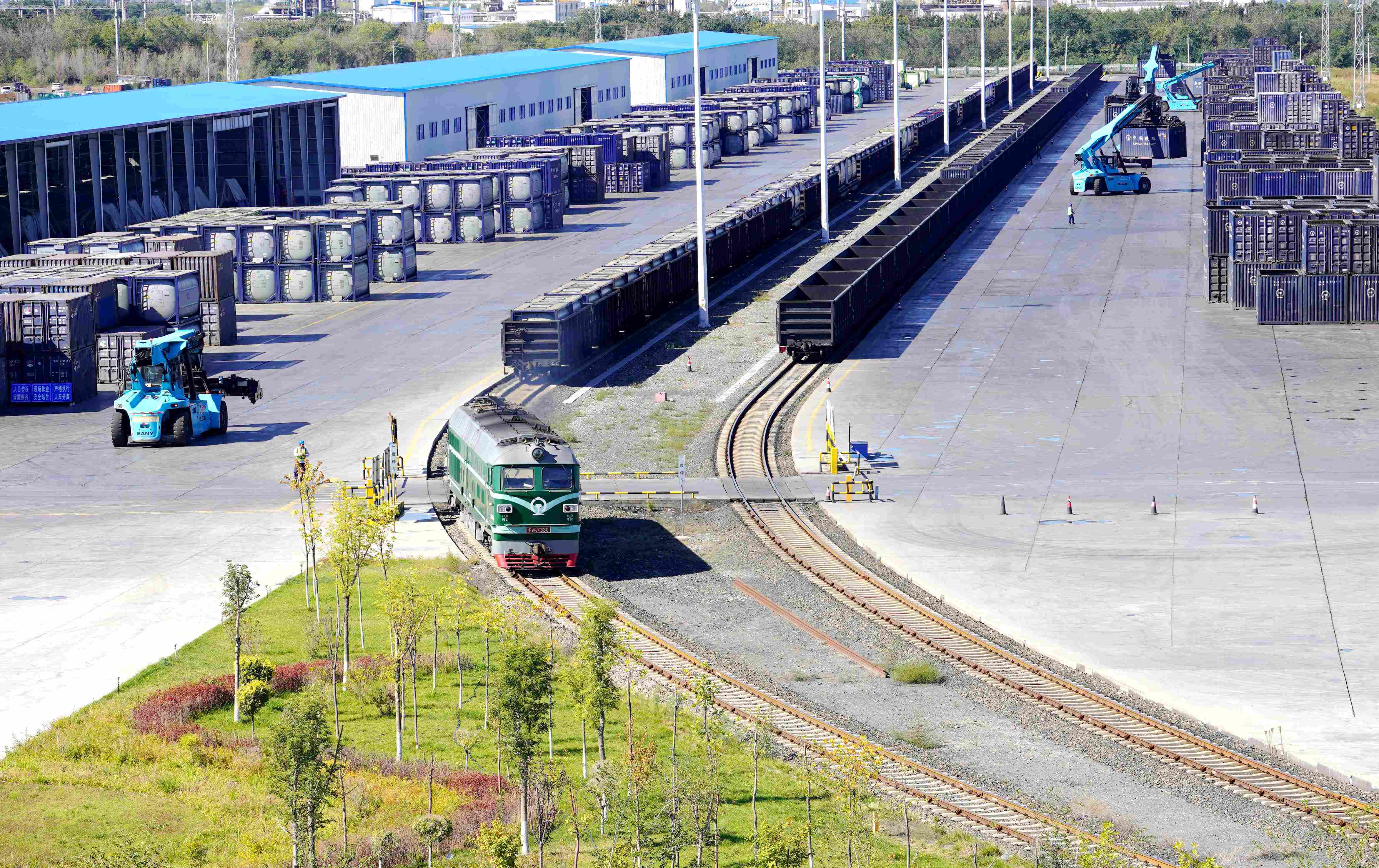 说起物流场站,很多人的印象往往是机车轰鸣、人员攒动、车辆往来穿梭。但走进位于石河子北工业园区的新疆汇鼎物流有限公司多式联运国际综合物流港,干净整洁的场站环境令人耳目一新。这里几乎看不到操作工人的身影,只有几台新能源正面吊机车在铁轨旁有条不紊地进行装卸作业,偶尔有一两名巡视的员工经过……而这,仅仅是汇鼎物流推进智能化、数字化转型的“冰山一角”。