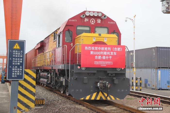2025年6月19日,中欧班列(合肥)第5000列鸣笛启程。(资料图) 章可为 摄
