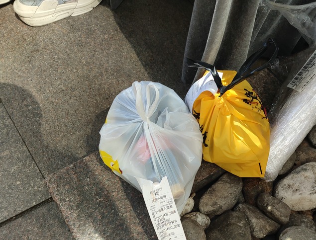 精致的纸袋,用订书机摁死;漂亮的无纺布袋,用贴纸封死;卡通图案的束口包装袋,用胶条缠好……CBD一栋写字楼前的小桌上,堆着各式各样的外卖,它们中绝大部分都使用了封签。