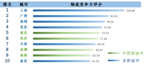 图:物流竞争力排行前十强城市名单