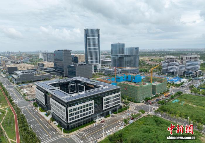 图为海口江东新区总部经济区(生态CBD)建设正酣,现代化楼宇拔地而起。 中新网记者 骆云飞 摄