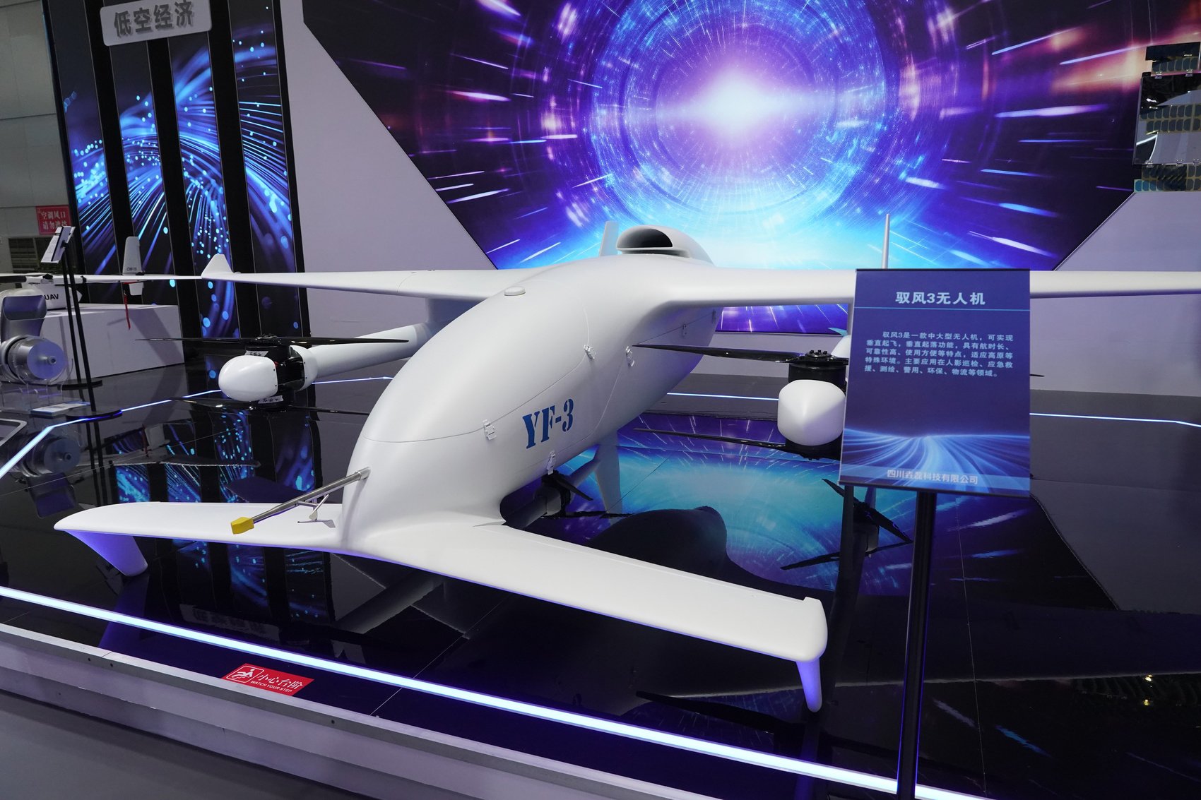 图为绵阳市涪城区企业展出的新款无人机,载重可达70公斤,预计将于2026年上市。付乔崧 摄