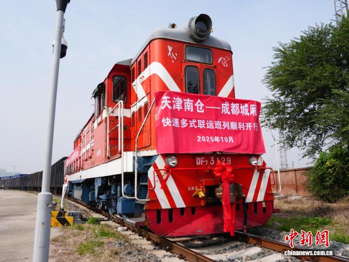 10月15日,天津南仓至成都城厢快速多式联运班列成功首发。(国铁北京局供图)