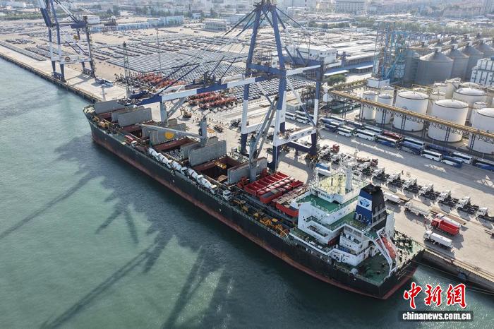 图为“奔腾”轮在烟台港装货。张超 摄