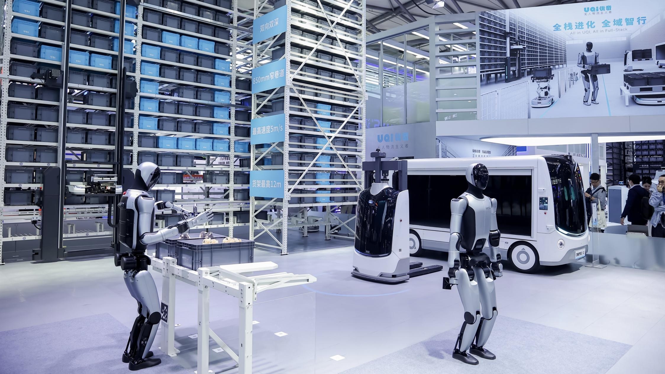 通过从工厂向电商和3PL(第三方物流)行业的物流场景拓展,UQI优奇在展会现场展示了全栈式无人物流2.0的作业流程:在移动机器人操作系统UPilot 2.0的调度下,Wali瓦力轻载无人叉车F1200L从无人物流车Chitu赤兔α货箱中卸货,并由Wali瓦力顶升移动机器人U1500送抵至入库缓存区;工业人形机器人Walker S2接力搬运托盘上的料箱至入库工作站,通过Wali瓦力料箱移动机器人U50与C50L协作实现料箱的入库存储;接到订单需求后,再次通过Wali瓦力料箱移动机器人C50L与U50协作将料箱出库,并由搭载灵巧手的Walker S2完成拣选后出库,从而实现“原料卸货-收货入库-立库存储-拣选出库”全流程无人化。