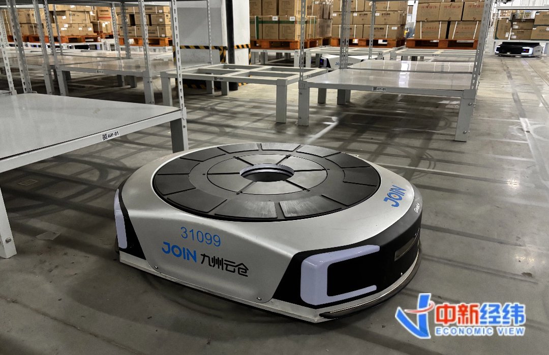 华南物流中心总经理叶自科向记者介绍,九州通的AGV机器人,单台占地面积不足一平方米,承重能力达1吨。这些AGV机器人由系统自动计算行走路线和分配任务,替代传统的人工搬运模式。