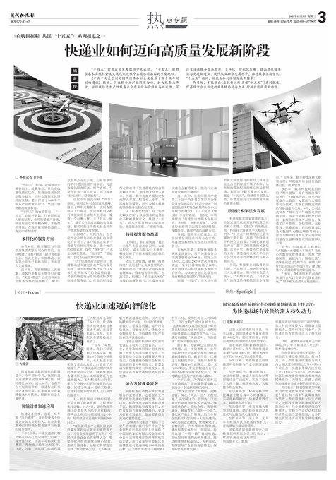 “十四五”时期,我国快递业乘势而上、成果斐然,日均揽收量突破五亿件,展现出强劲的民生服务能力,同时也聚焦实体经济的发展,累计打造了1600多个服务产业的重点项目,交出一份亮眼的发展答卷。“十四五”收官绘答卷,“十五五”启航开新篇。行业即将迈入新的征程,未来展望催人奋进,快递行业也须扬鞭奋蹄,才能提质增效,在高质量发展的道路上跑出中国加速度。