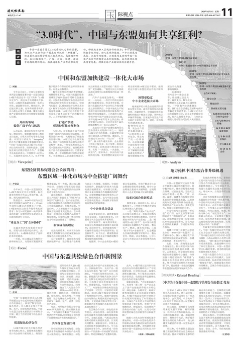 中国—东盟自贸区3.0版升级议定书的签署,为双方产业合作按下制度型升级的“加速键”,标志着双边经贸合作进入更高开放、高效的新阶段。在3.0版框架下,广西、云南、福建、海南等地围绕规则对接、物流通道和产业布局积极行动,释放地方融入区域合作的潜力;中小企业加快数字化转型,融入区域价值链。一个以绿色为底色、以数字为驱动、以制度为支撑的中国—东盟产业合作新图景正在加速铺展,成为推动区域高质量发展、增强全球产业链韧性的关键力量。