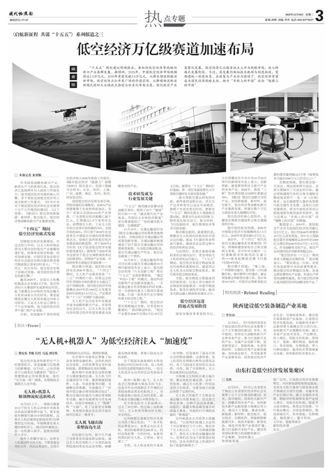 “十五五”规划建议明确提出,要加快低空经济等战略性新兴产业集群发展。据预测,2025年,中国低空经济市场规模将达1.5万亿元,2035年有望突破3.5万亿元。从降本增效到激活新市场,低空经济正打开更广阔的价值空间。从解锁物流配送新模式到加大全域试点推进与体系化布局力度,深化航空产业集聚化发展,低空经济已从探索试点上升为战略布局,进入跨越式发展阶段。不过,其发展仍面临技术瓶颈与制度挑战,需构建统一制度体系。在政策与产业合力推动下,低空经济有望成为国民经济战略支柱,助力“车轮上的中国”迈向“翅膀上的中国”。