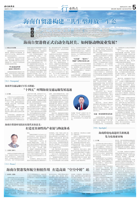 海南省交通运输厅厅长司迺超介绍,“十四五”时期,海南省除公路、海运、航空外,铁路、邮政等交通体系建设也取得显著成效。