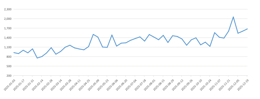 与此同时,大宗商品市场的波动与资源配置效率备受关注。《新华·山东港口大宗商品指数运行报告(2025)》依托山东港口这一全国最重要的大宗商品集散地,发布了该体系涵盖原油、铁矿石、焦炭、钢坯等八大类产品的14只高频指数,通过日、周、月、年多维度数据,精准捕捉大宗商品市场的“脉搏”。报告显示,2025年山东港口原油罐容活跃度指数震荡上行,并在11月28日冲高至2054.64点,较基期涨幅达105.46%,反映出原油存储、流通及远期交易的持续活跃。铁矿石市场虽经历波动,但山东港口铁矿石进出港指数直观反映了市场需求的韧性。此外,硫磺现货交易价格指数受新能源需求崛起及地缘因素推动,在12月11日飙升至全年高点,较年初大幅上涨168.97%,突显了大宗商品市场在能源转型背景下的重新定价逻辑。这些精准、及时的数据,有效提升了市场透明度,为产业链上下游企业的决策提供了关键参考,增强了中国在大宗商品领域的定价影响力。