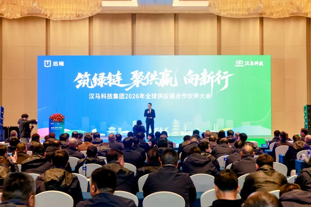 3月11日,以“筑绿链、聚供赢、向新行”为主题的汉马科技集团2026全球供应链合作伙伴大会,在安徽马鞍山圆满举行。马鞍山市政府领导、远程新能源商用车集团供应链领导、汉马科技集团相关业务负责人以及400多位供应链合作伙伴齐聚一堂,深入探讨当前行业趋势,聚焦汉马科技当前业务转型及未来战略发展方向,深化互信合作、共谋战略协同,推动构建稳定高效、开放共赢的全球化供应链体系。