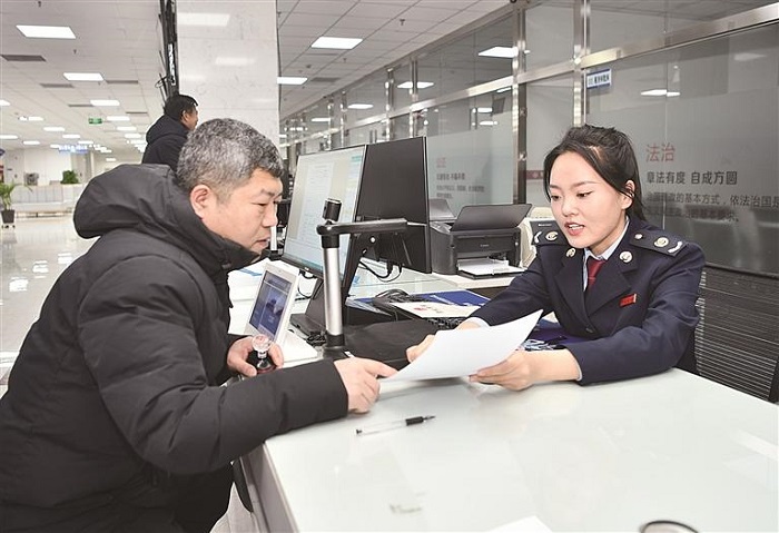 图为双桥区政务服务中心税务工作人员为企业代表办理业务。和合承德网记者 陈相旭 摄