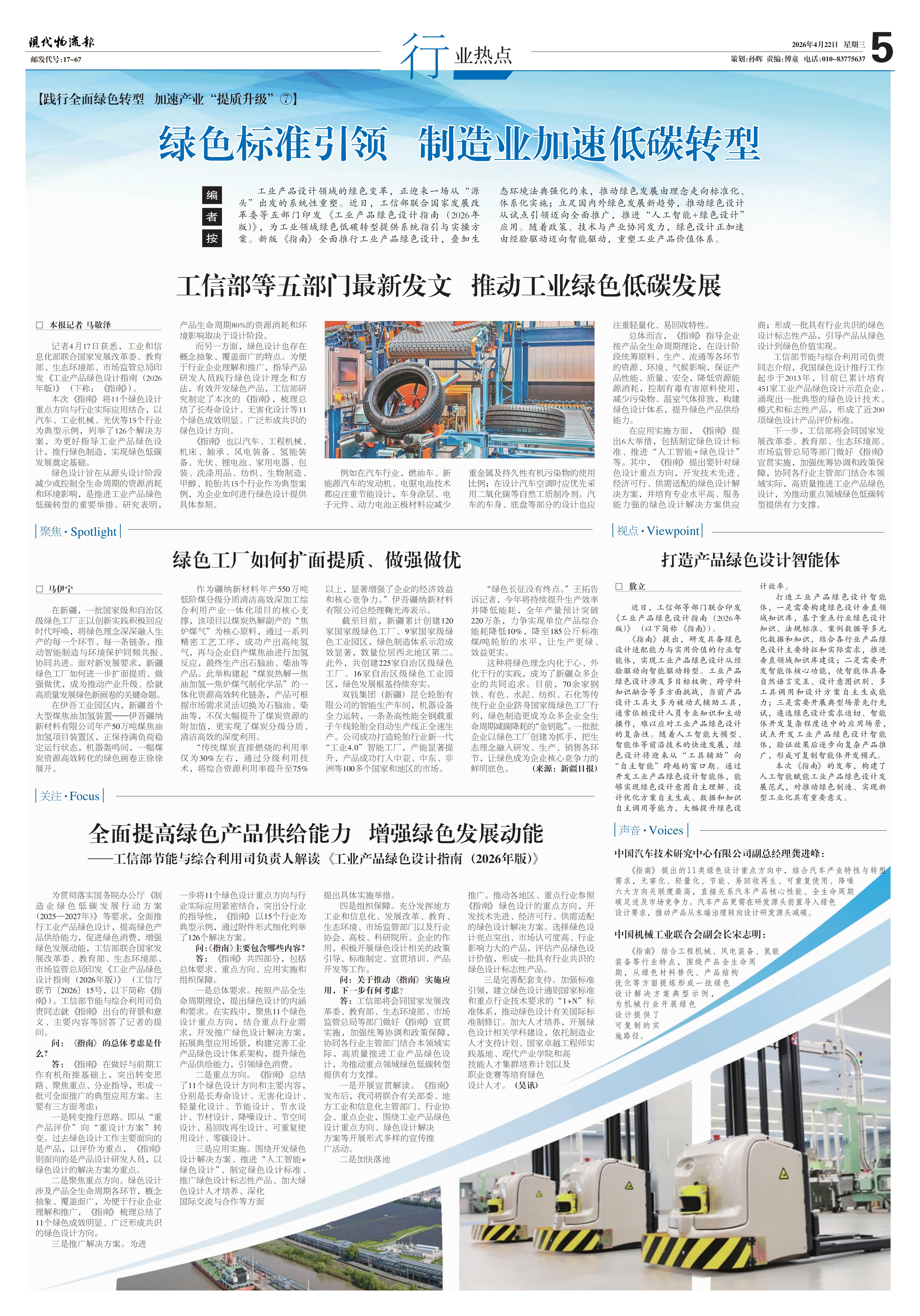 全面提高绿色产品供给能力 增强绿色发展动能——工信部节能与综合利用司负责人解读《工业产品绿色设计指南(2026年版)》