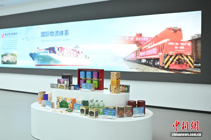 图为武陵山(秀山)国际电商产业园展厅里摆放的海外商品。记者 何蓬磊 摄