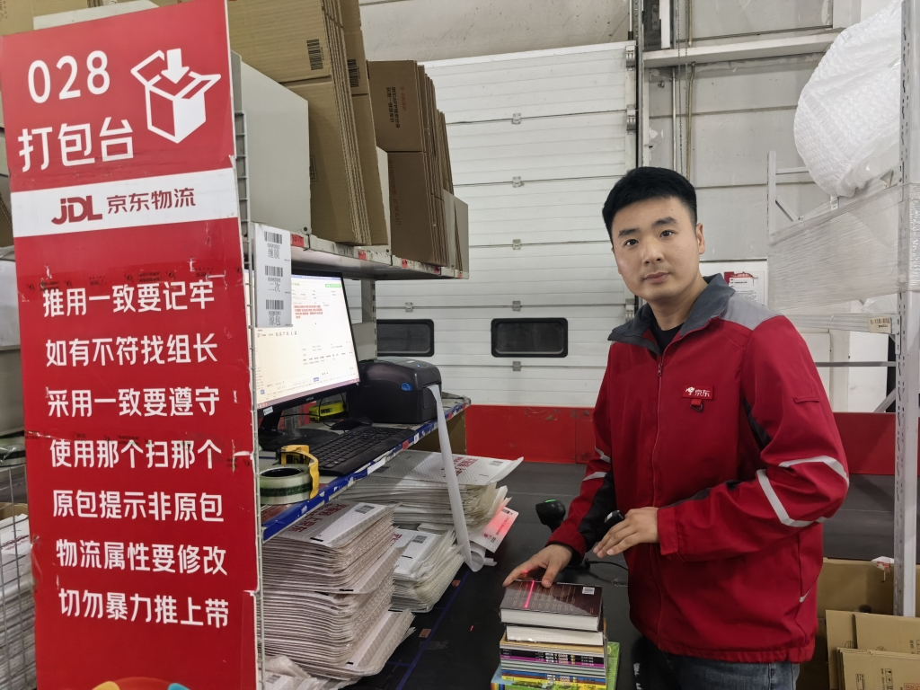 2025年4月,于明洋回到仓储岗位,成为出库组负责人,还当起“教练”,把打包技巧毫无保留教给同事。有人问他能否突破一天8000件的极限,他笑着说:“纪录不重要,每本书到读者手里完好就好。”
