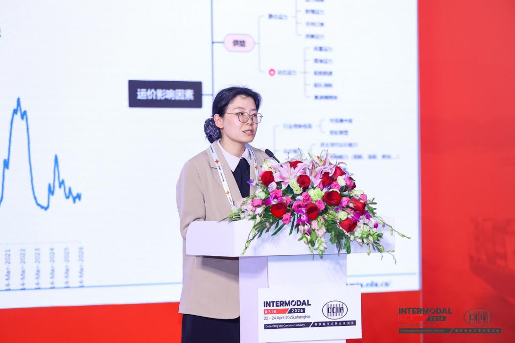 在4月23日举行的2026集装箱多式联运亚洲展“国际航运市场热点专场”上,上海国际航运研究中心(SISI)副所长郑静文就当前集装箱运输市场的宏观特征与趋势发表了专题演讲。