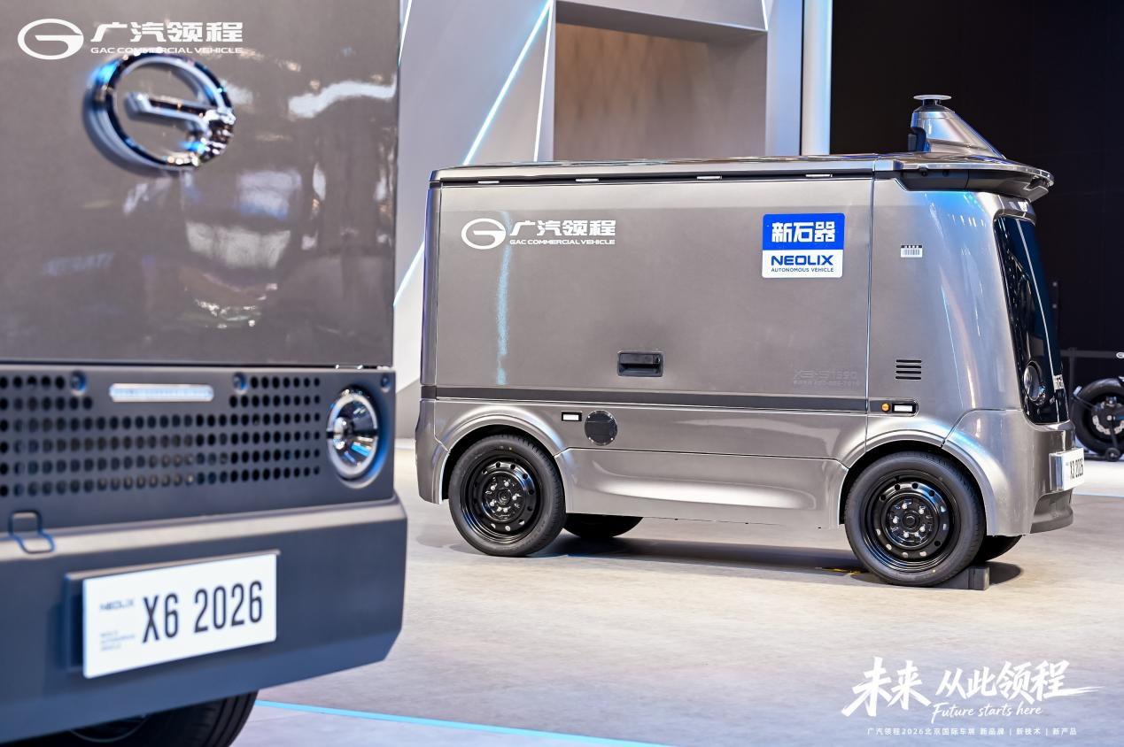 2026北京国际汽车展览会正式开幕,新石器无人车在广汽集团旗下新能源商用车品牌广汽领程展台重磅亮相,由新石器和广汽远程联合开发的X6T全车规级无人物流车迎来首秀,同步展出的还有新石器明星车型X3,集中展现“技术+制造+场景”协同创新的最新成果。