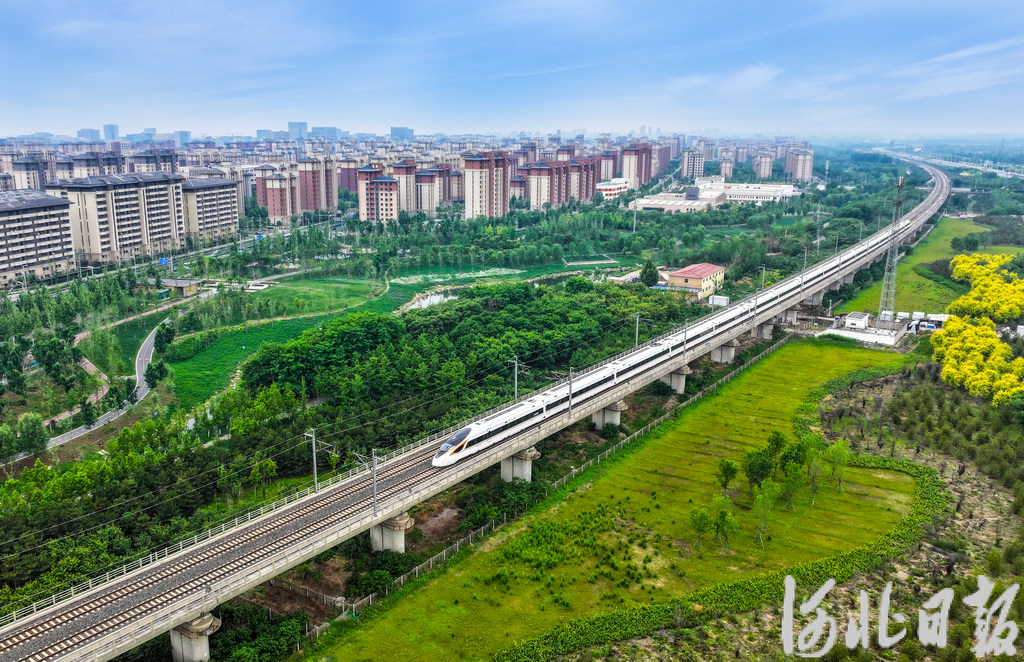 一列高铁列车驶过雄安新区容东片区。河北日报资料片