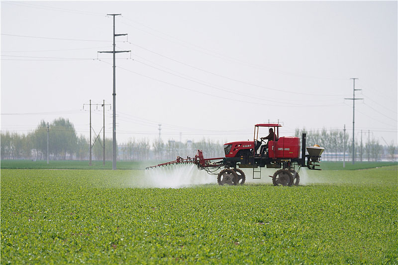 4月21日,唐山吊桥食品有限公司豌豆种植基地,工人正在给豌豆施叶面肥。 河北日报记者 赵 墨摄